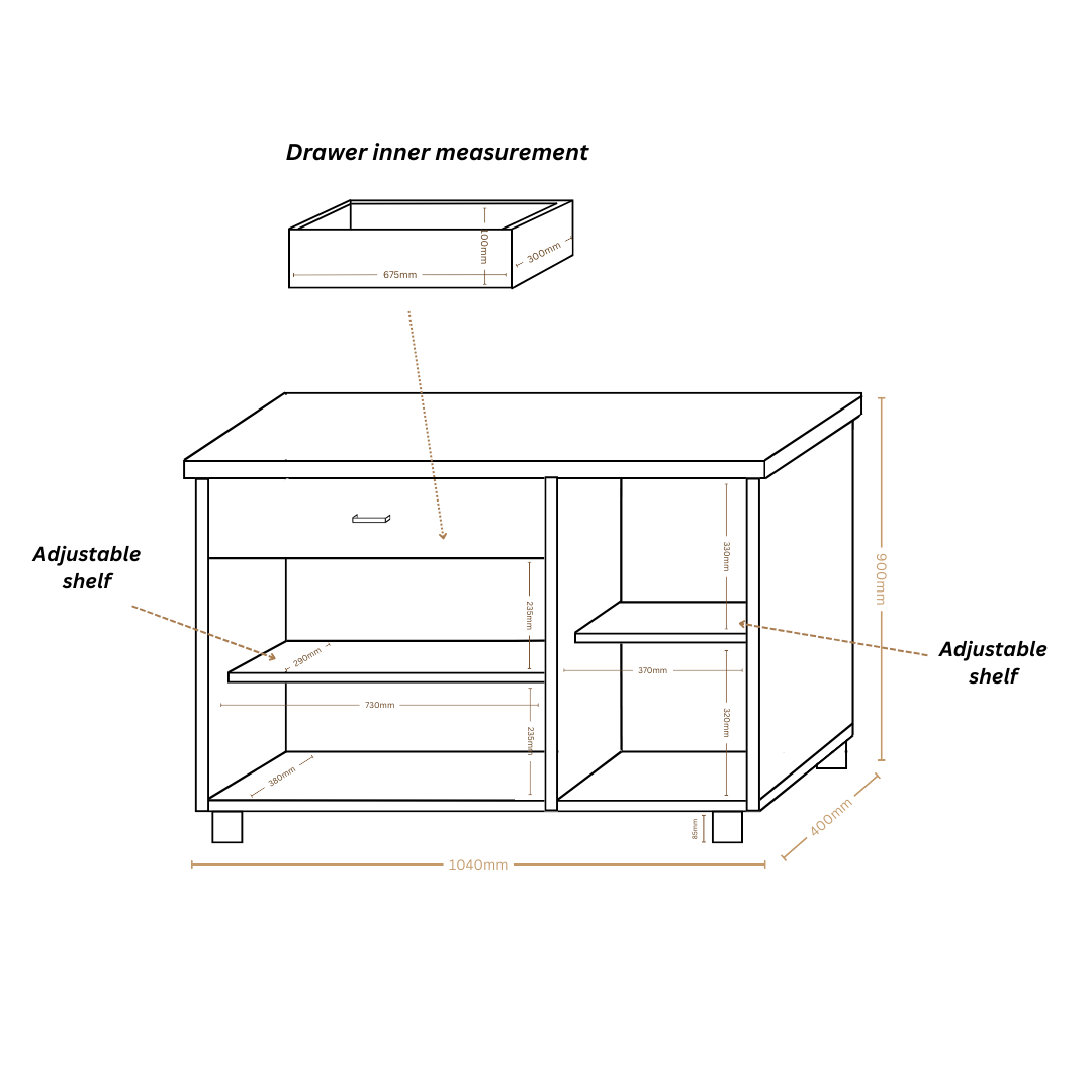 (L) 1220mm X (W) 406mm X (H) 840mm With Top: (L) 1220mm X 406mm X (H) 1930mm